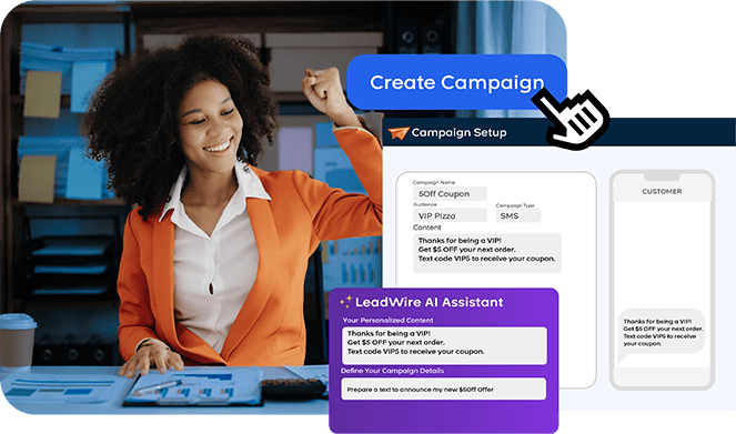 Experience the power of self-service campaign management with LeadWire. Create, schedule, and optimize your SMS & MMS campaigns—on your terms, instantly.