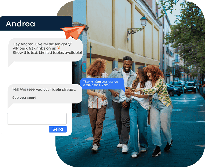 Restaurants can send daily or weekly SMS blasts featuring special menu items, happy hour deals, or limited-time promotions. This is especially effective for driving traffic during slower periods.